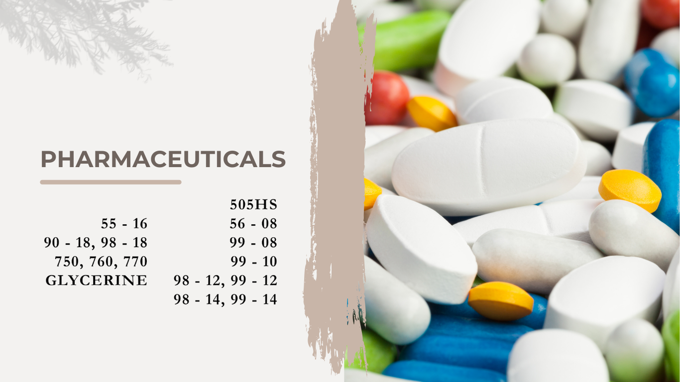 Summit Globe Trade provides refined palm oil–based ingredients for the pharmaceutical industry, used in capsules, ointments, and medicinal formulations. Our products ensure high purity, stability, and safety, meeting international pharmaceutical standards for quality and sustainability.